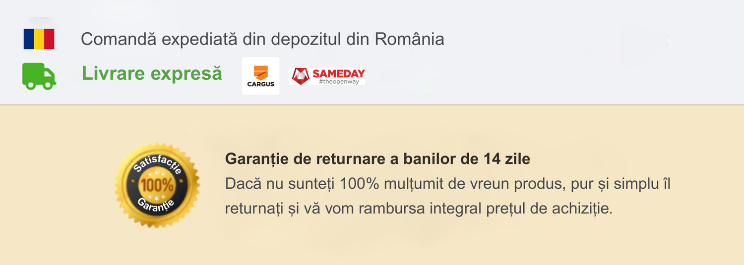Garanție de returnare a banilor în 90 de zile. Retururi clare și livrare rapidă — detalii la finalizarea comenzii.