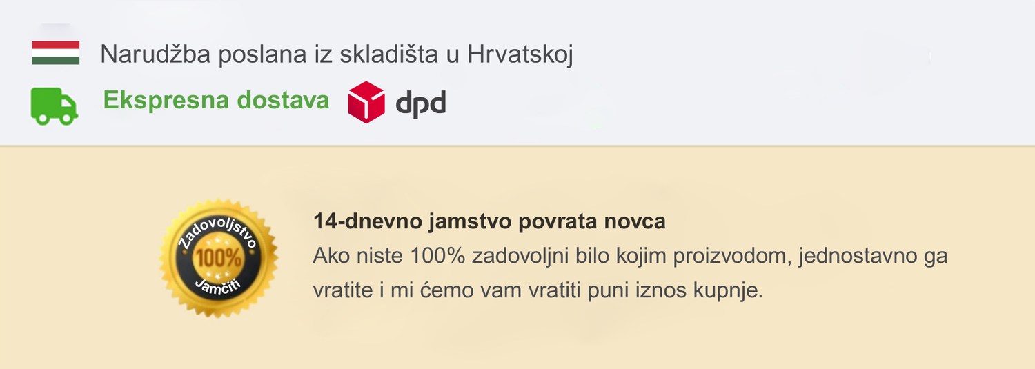 90-dnevno jamstvo povrata novca. Jasne povrate i brza dostava—detalji na blagajni.