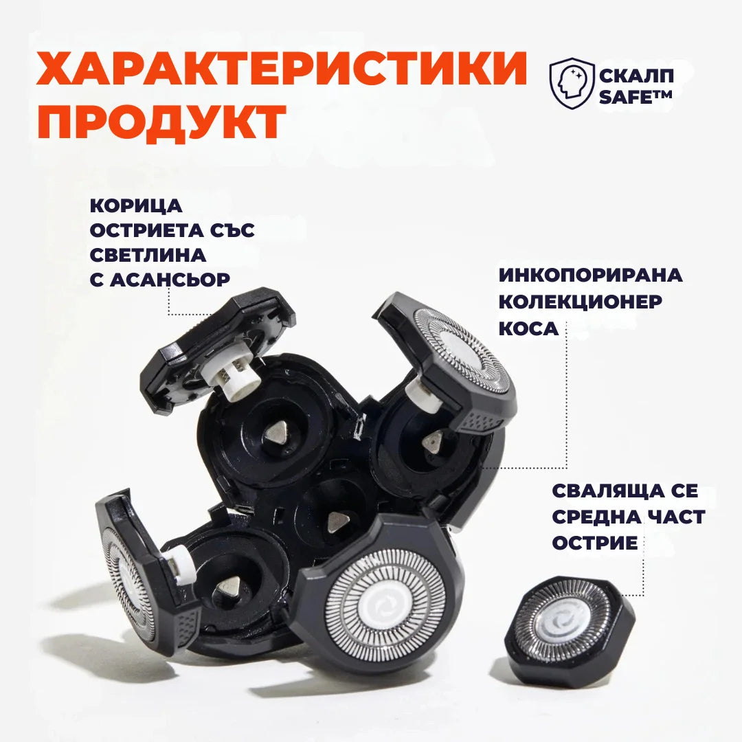 Проектиран за удобен захват в ръката, той позволява лесно бръснене на главата с пълен контрол.